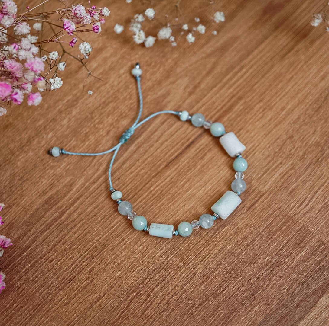 Armband Blaue Tiefe – Larimar, Amazonit, Aquamarin und Bergkristall in Harmonie