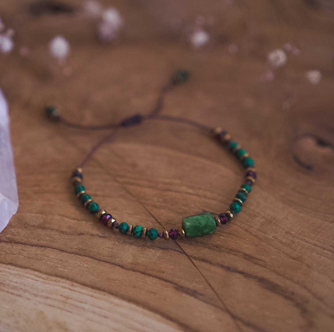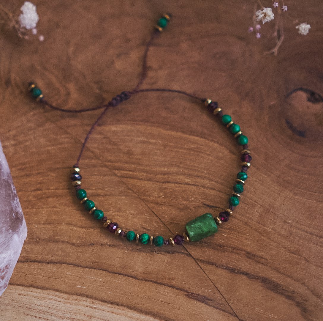 Armband der Erde und des Feuers – Jade, Granat, Malachit