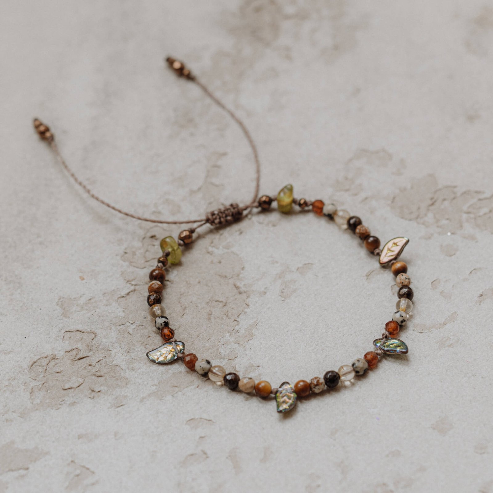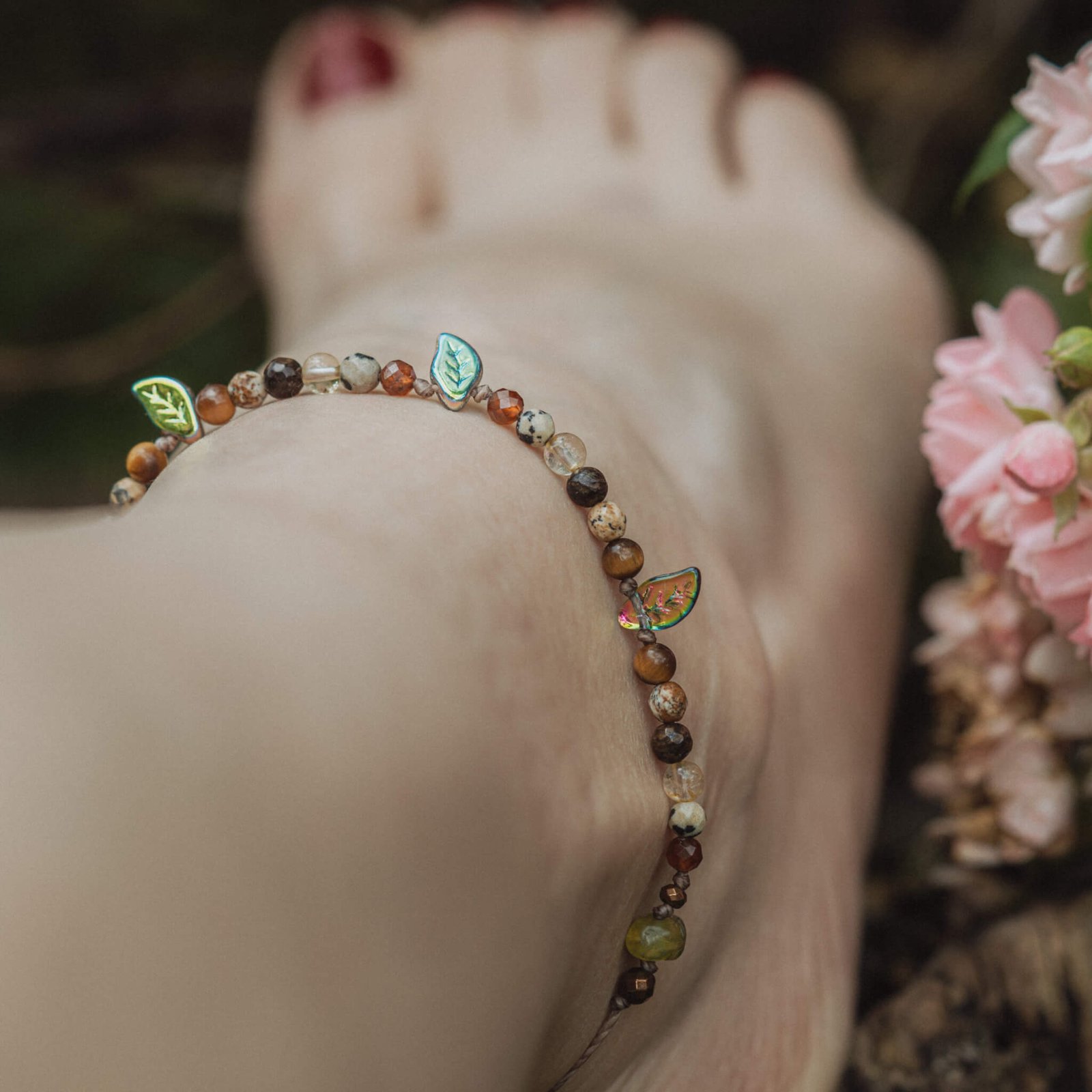 Fußkettchen mit Blättern und Natursteinen – ein magischer Hauch des Sommers