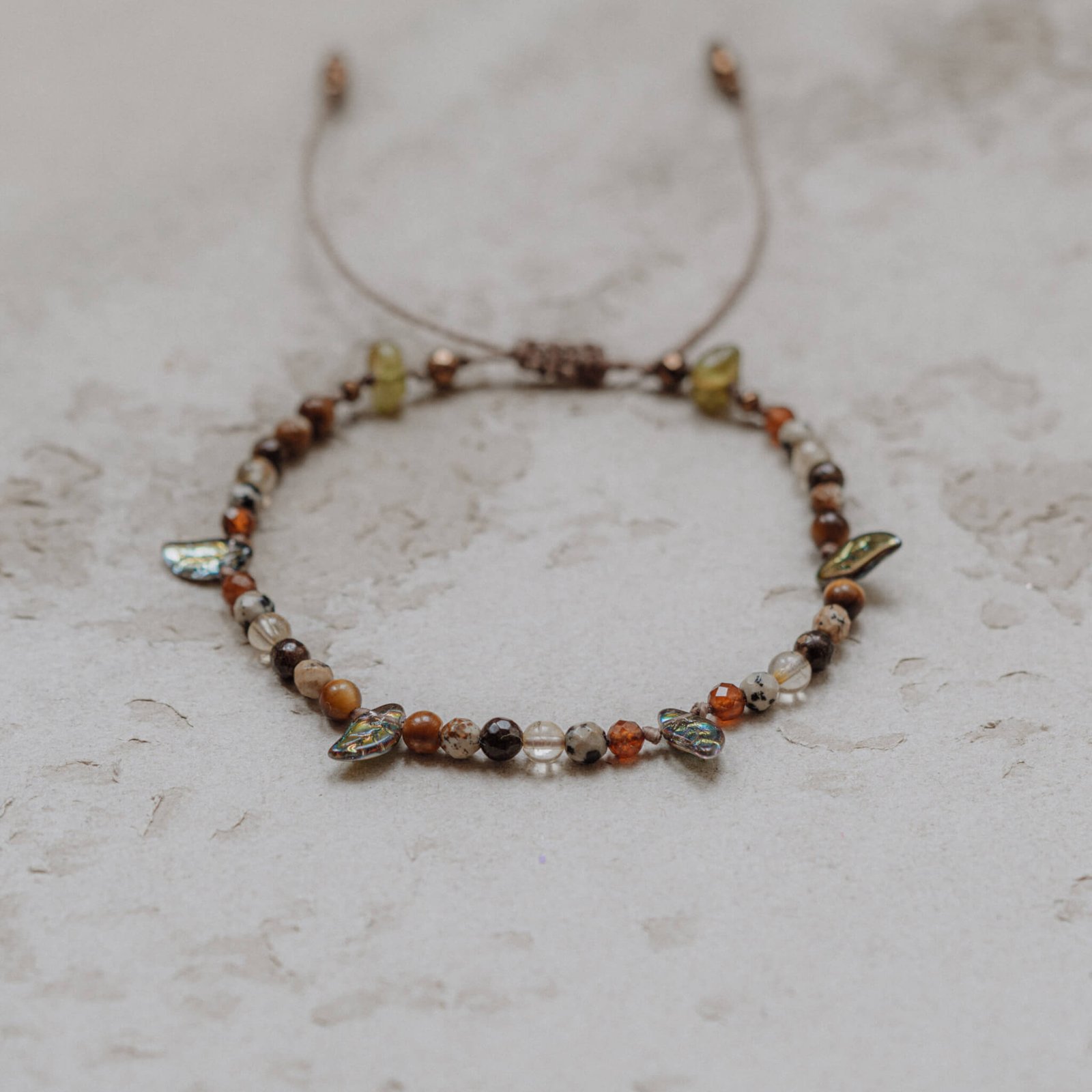 Das Fußkettchen mit Blättern und Natursteinen ist ein einzigartiges Accessoire, das Weiblichkeit, Wildheit und die subtile Magie des Waldes vereint. Es ist zart und bequem und passt daher perfekt zu sommerlichen Outfits – sowohl barfuß als auch in Sandalen. Wenn du dich nach Natur sehnst und gleichzeitig die Kraft der Steine spüren möchtest, wird dir dieses Armband sicher gefallen. Es ist ein kleines Detail, das du täglich tragen kannst, denn es vereint Leichtigkeit, Bedeutung und Harmonie. Wenn du es anlegst, erinnert es dich daran, dass du ein Teil der Natur bist – selbst wenn du an einer Bushaltestelle mitten in der Stadt stehst. Deshalb ist es nicht nur im Urlaubskoffer, sondern auch im Alltag perfekt – immer dann, wenn du dich dir selbst näher fühlen möchtest.