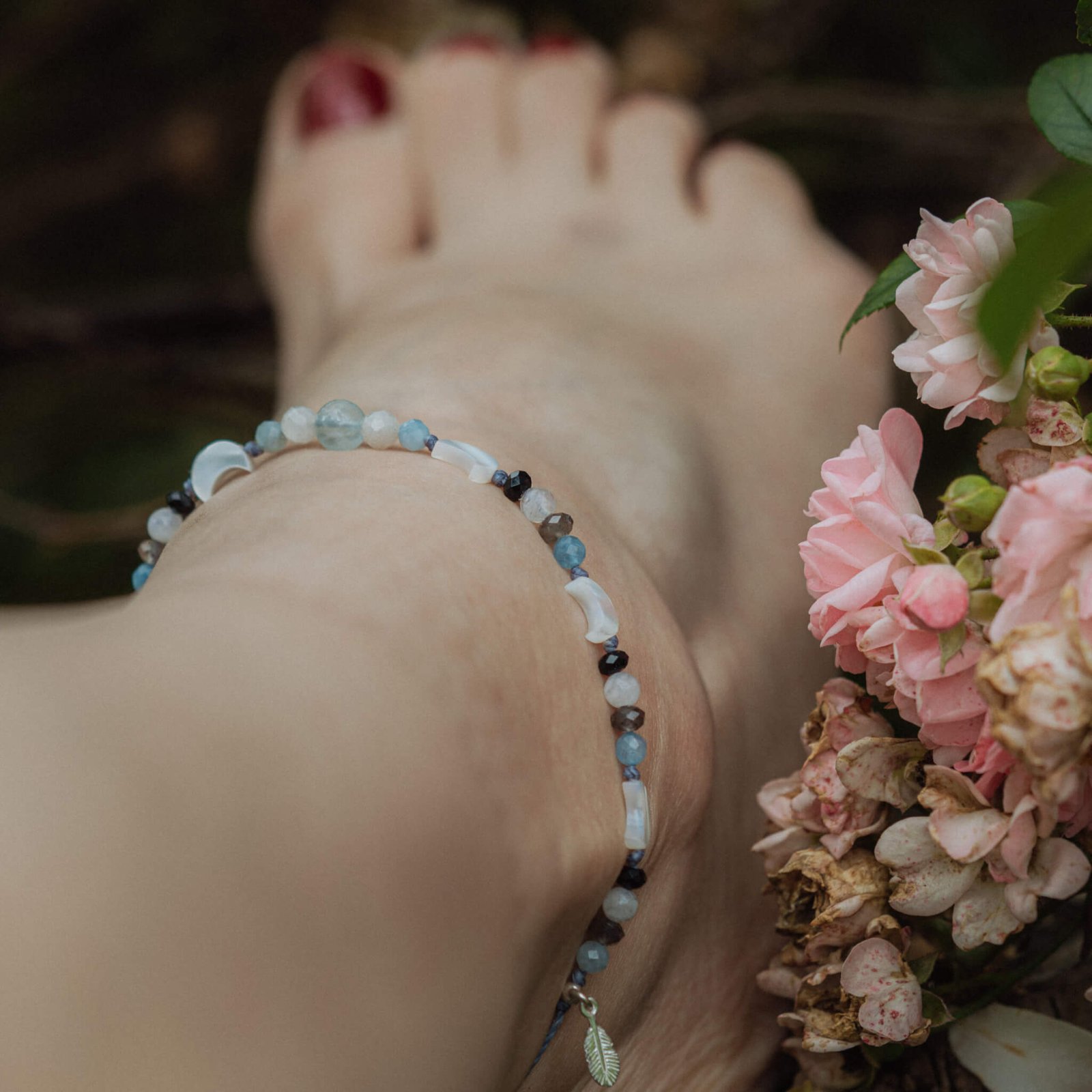 Fußkettchen mit Perlmutt und Natursteinen – Leichtigkeit, Ruhe und Intuition