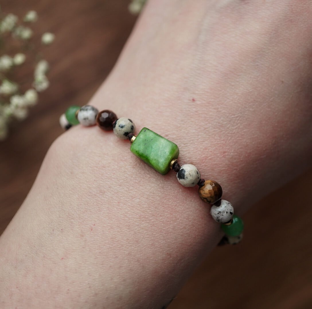 Das Armband „Harmonie der Erde“ mit Nephrit und Natursteinen hilft, das Gleichgewicht wiederzufinden, Emotionen zu beruhigen und im Einklang mit dem eigenen Rhythmus zu handeln. Ideal für die tägliche energetische Unterstützung.
