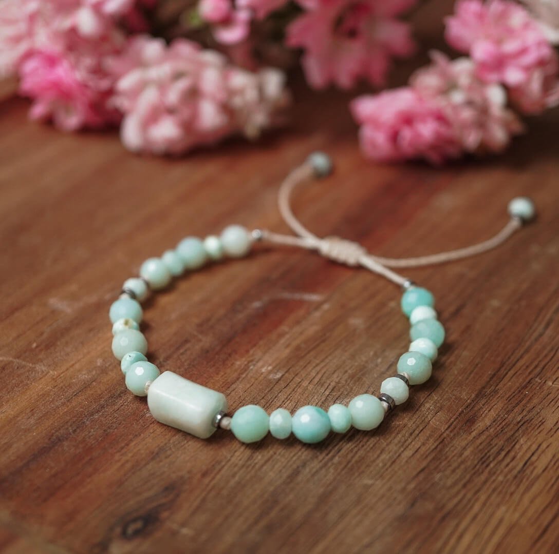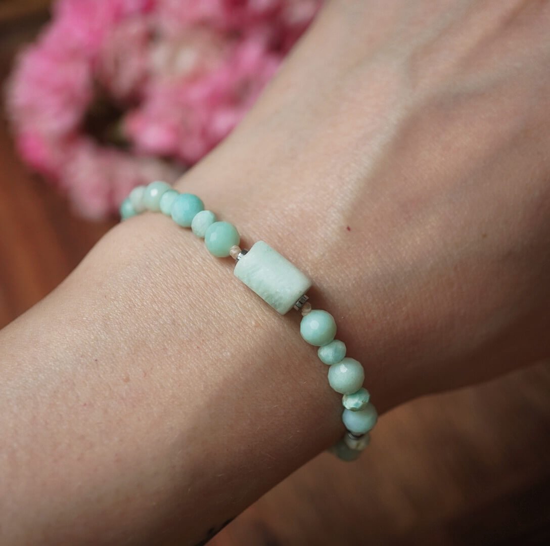 Larimar-Armband – Harmonie der Erde, Amazonit und Hämatit