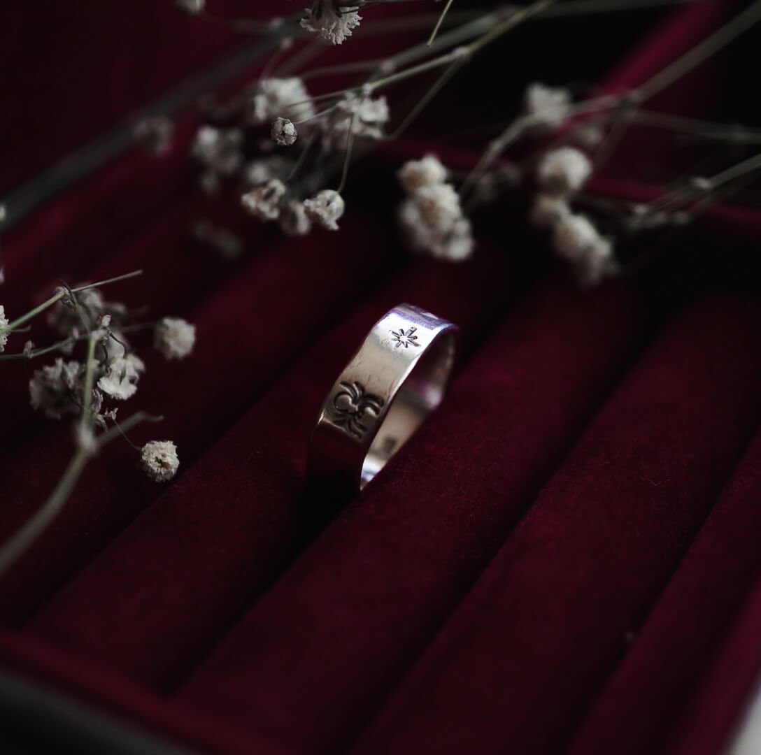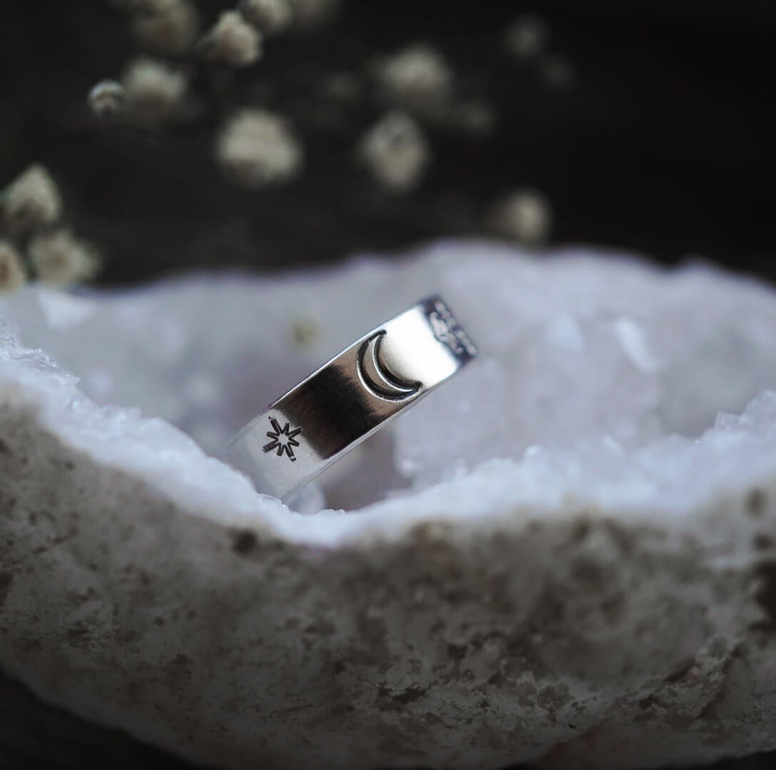 Füge diesen Silberring deiner Sammlung hinzu, der dich in die Welt magischer Nächte und geheimnisvoller Geschichten entführt.