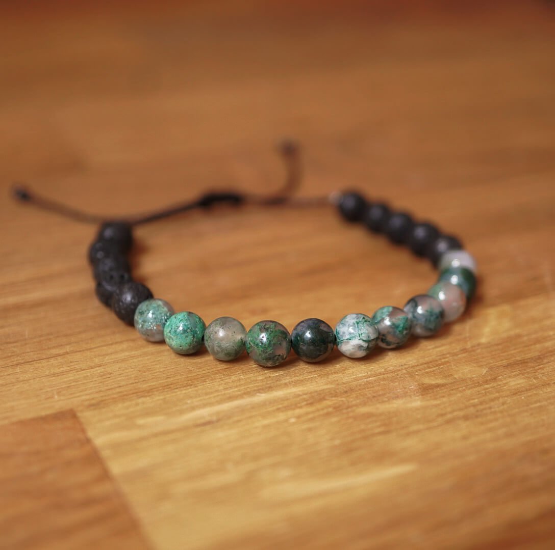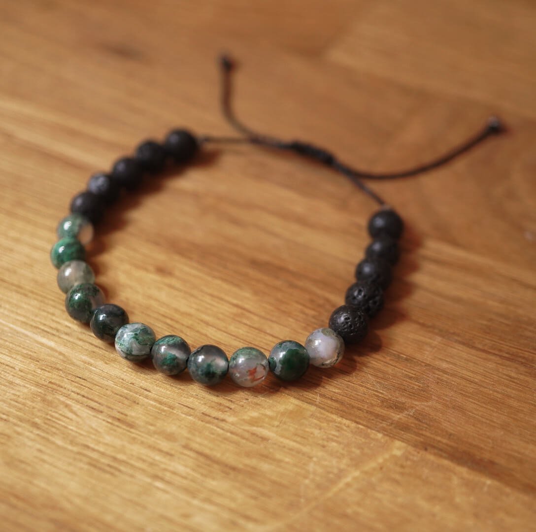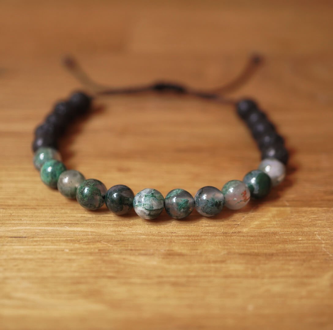 Discover nature's harmony with our bracelet, featuring moss agate, volcanic lava, and hematite. Moss agate symbolizes peace and stability, volcanic lava adds energy and power, and hematite boosts courage and self-confidence. Perfect for everyday wear, it beautifully complements any style, bringing natural elegance and positive energy into your life.