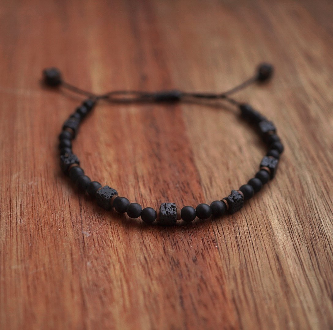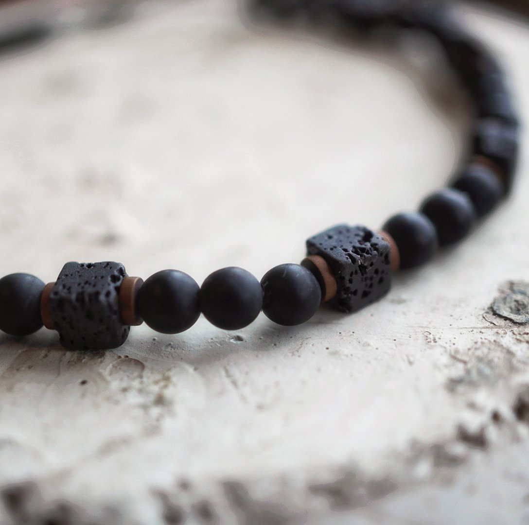 This unique and stylish bracelet combines Volcanic Lava, matte Obsidian, and copper Hematite, harnessing the power of natural stones. Volcanic Lava energizes, symbolizing nature's strength, while matte Obsidian brings peace and balance. Copper Hematite adds elegance and a unique shimmer. More than just an accessory, it highlights your individuality, offering positive energy and protection. Ideal for everyday wear or as a thoughtful gift.