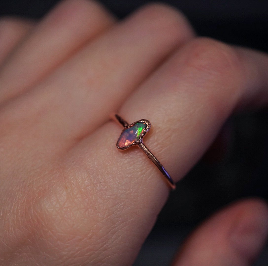 This raw Opal ring is more than just jewelry; it's a true work of nature, showcasing unparalleled uniqueness. Each stone is one-of-a-kind, retaining its raw, natural structure, which adds extraordinary charm. The Opal's delicate beauty intertwines with its ruggedness, creating a ring that emanates not only beauty but also the mystery of nature. By wearing this exceptional piece, you highlight your individuality and connect with the magic of Opal's energy.