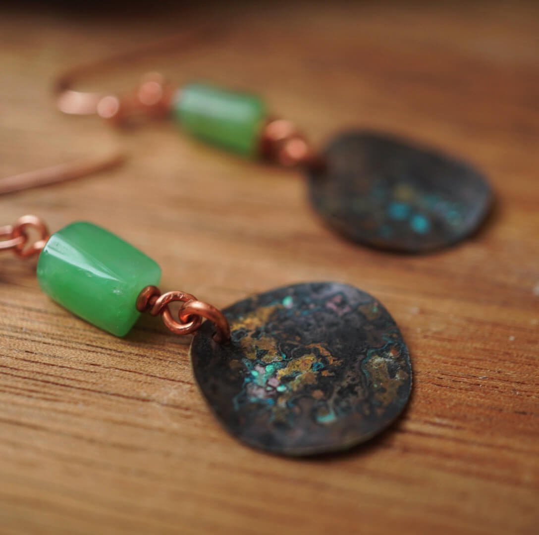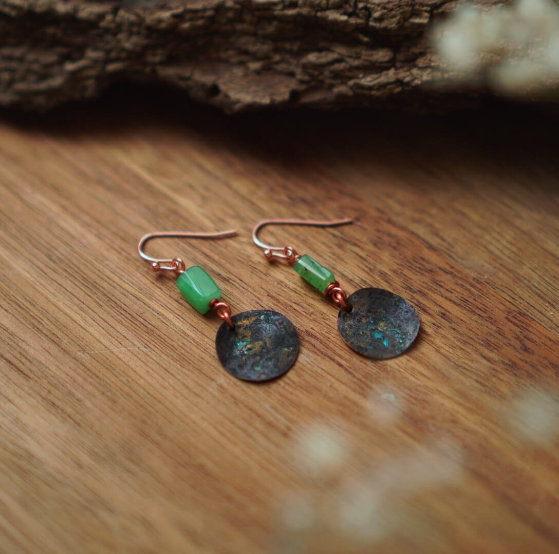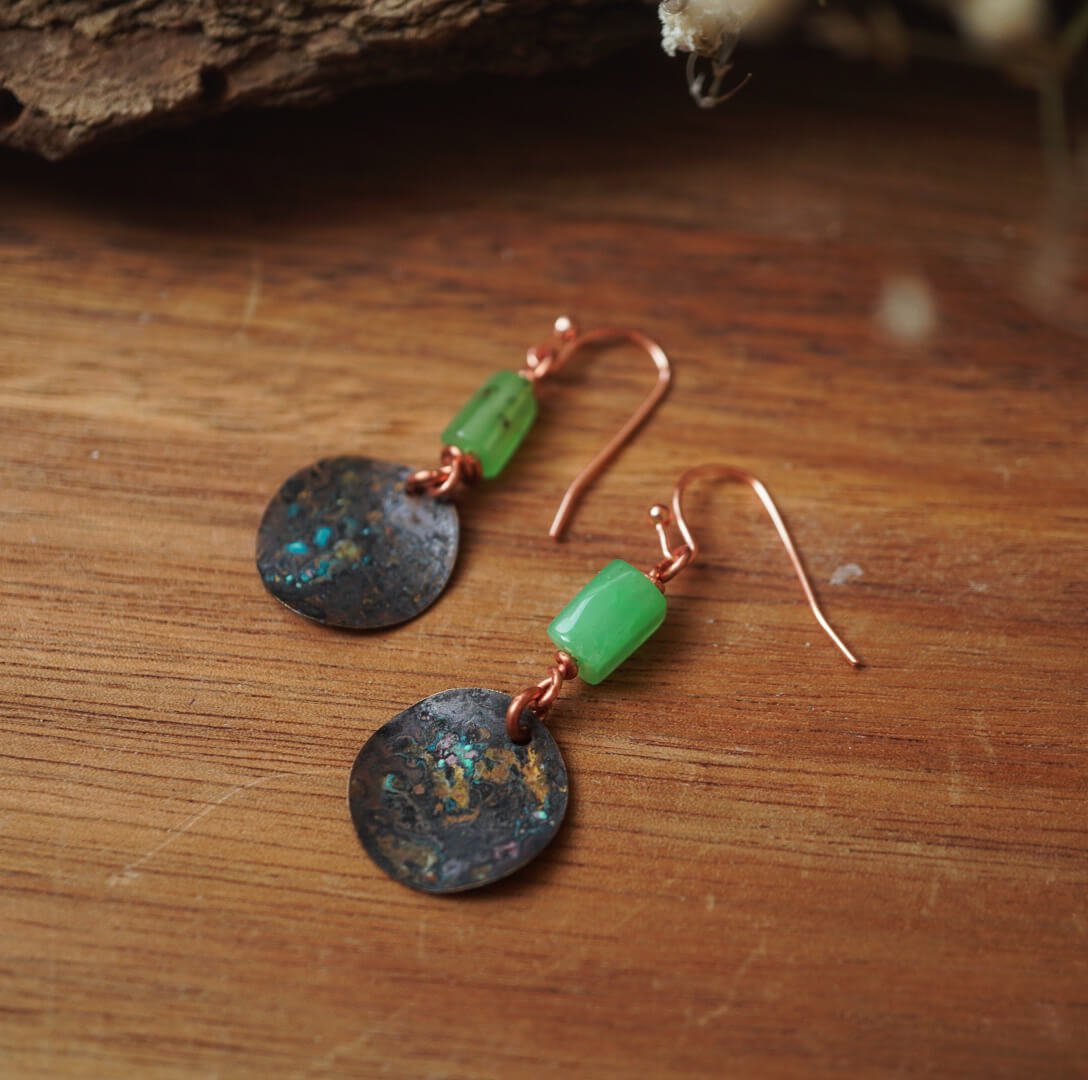 Natural Beauty: Chrysoprase Earrings in Copper