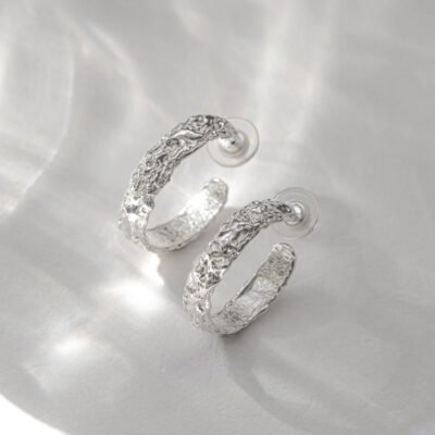 Artystyczne kolczyki srebrne „Szept Metalu” wykonuję ręcznie ze srebra próby 925, zaczynając od modelowania formy w wosku jubilerskim. Rzeźbiarskie koła o naturalnej fakturze i średnicy ok. 2,7 cm subtelnie podkreślają rysy twarzy, pozostając wyrazistym, ale nienachalnym akcentem. Każda para powstaje jako pojedynczy egzemplarz – z myślą o osobach, które wybierają biżuterię z charakterem i śladem ręcznej pracy.