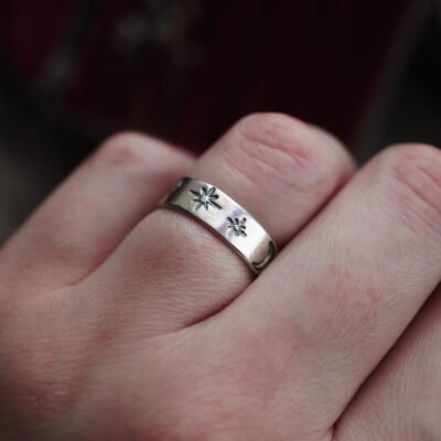 Ręcznie rzeźbiony srebrny pierścionek o fakturze skały. Satynowe wykończenie, oksyda i surowy charakter. Rozmiar 19.