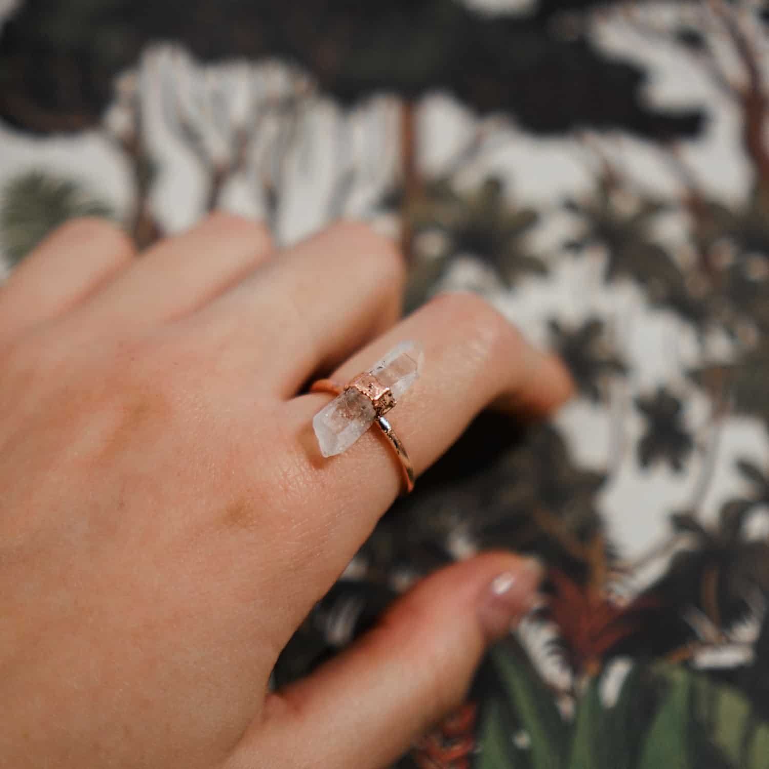 Pierścionek z kryształem górskim – oczyszczająca biżuteria w miedzianej oprawie