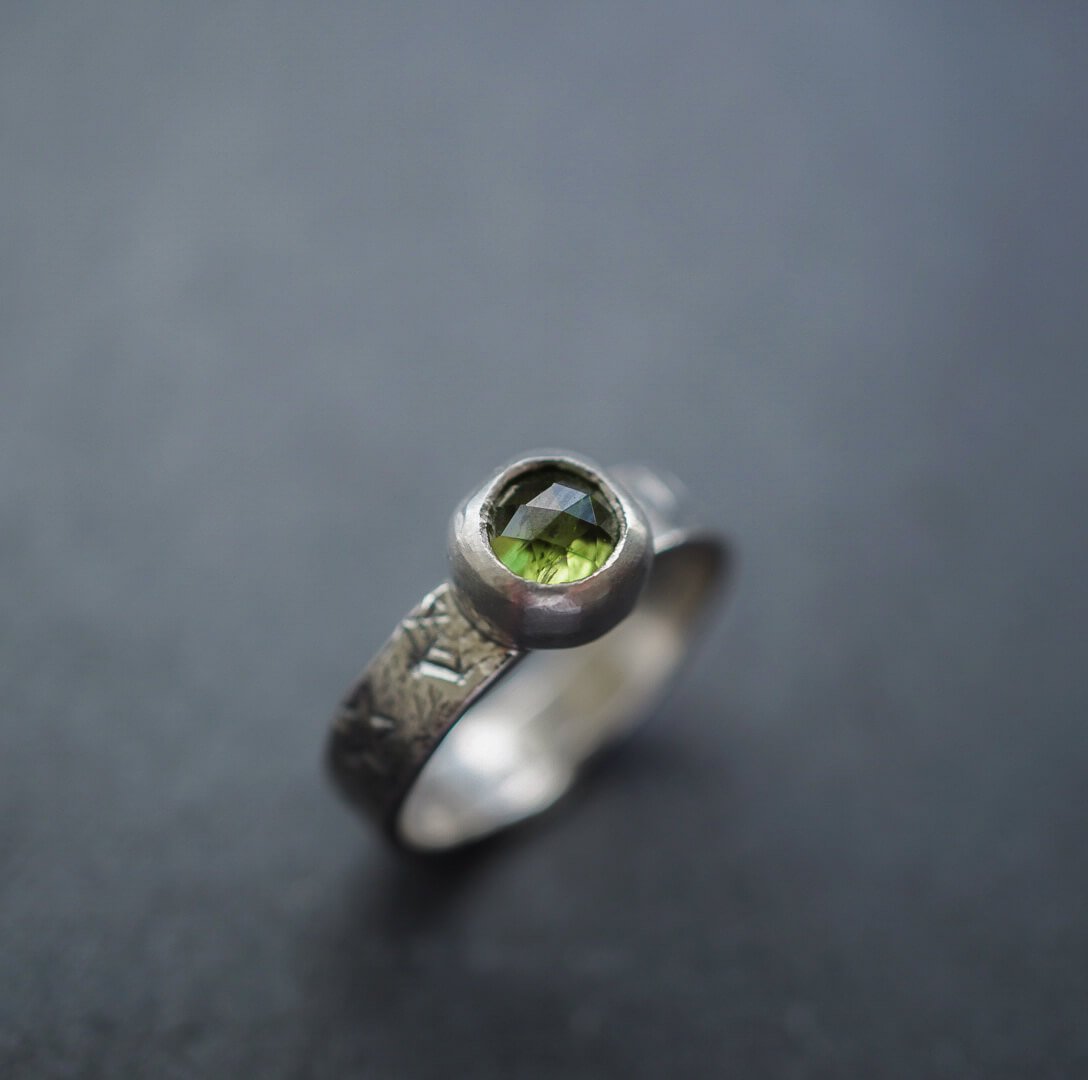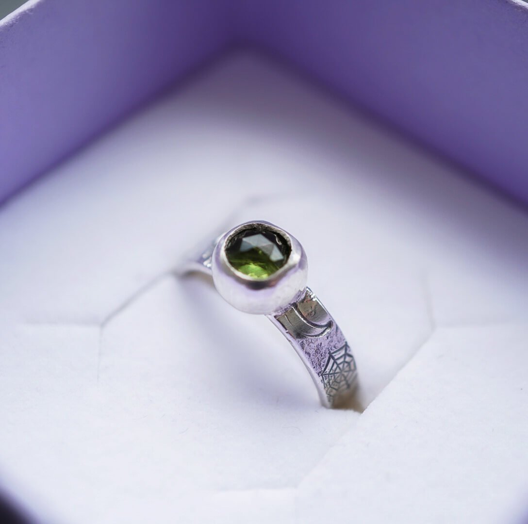 Pierścionek z oliwinem – srebro, które przyciąga światło r. 11