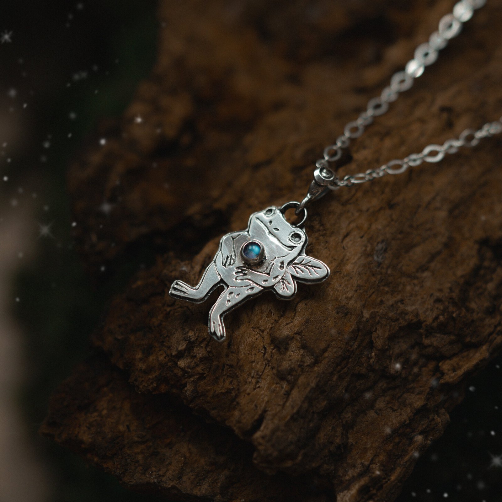 Naszyjnik wykonałam ręcznie ze srebra próby 925. Najpierw powstał model z wosku, który następnie został odlany w srebrze i dopracowany ręcznie. Dzięki temu każda żabka ma swój własny charakter — drobne różnice są naturalną częścią procesu i dowodem, że to nie jest masowa produkcja.